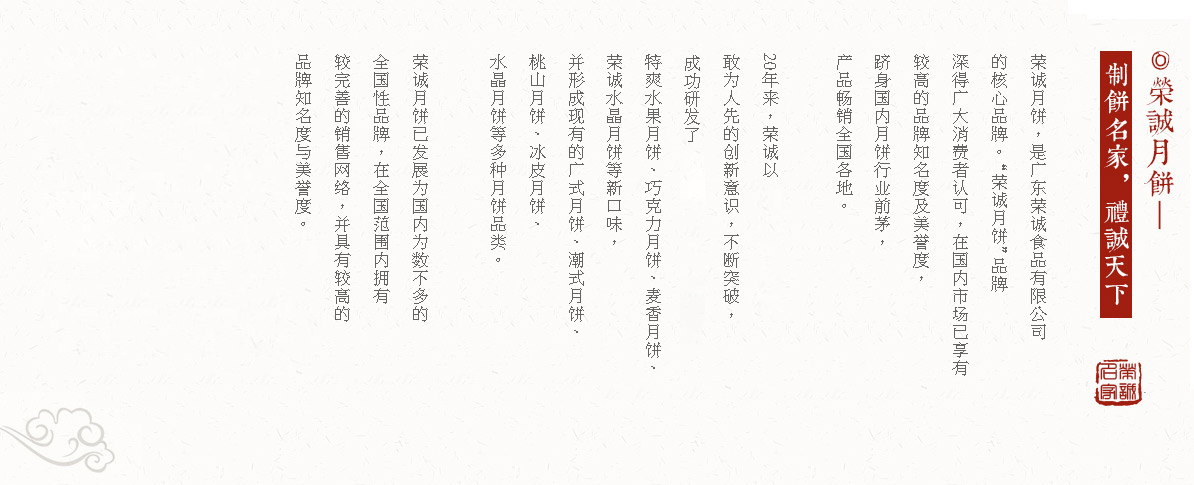 以團圓為餡,以人生百年制酥,用中國人的思念焙烤。榮誠月餅--默默守護中秋文化