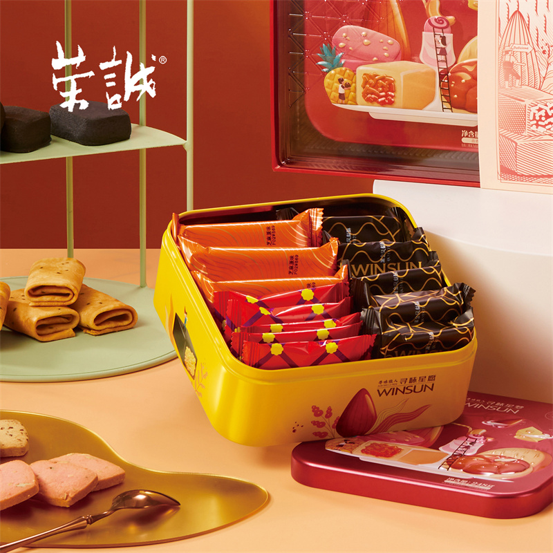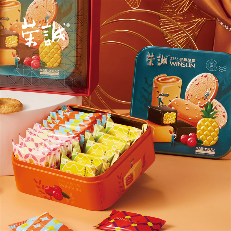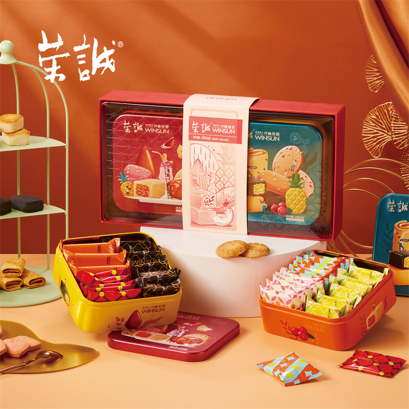 30g香妃鳳梨酥x5,8g果仁曲奇x6,10g香焙杏仁酥x5,8g蔓越莓曲奇x5,13.5g澳式金泊雞蛋卷(芝麻原味)x3,30g黑金鳳梨酥x5