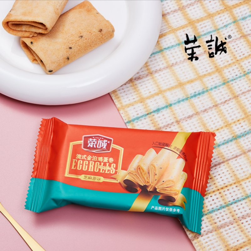 【編 碼】 CGS2116 【條形碼】 【尺 寸】 12x7x2.5cm (單塊包裝尺寸) 【凈含量】 【規(guī) 格】 3kg/箱 【內(nèi)容物】 1.5kg澳式金泊雞蛋卷(芝麻原味)/袋x2